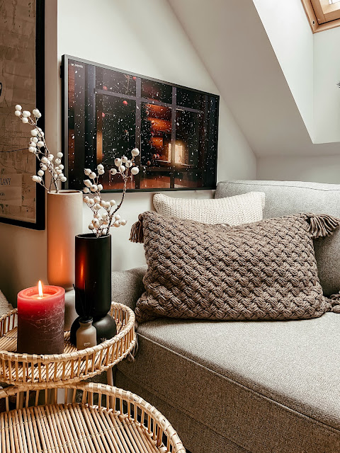 Nie bez powodu 1 grudnia w tym roku witam Was właśnie tym postem z tym miejscem. Jest to jedno z moich ulubionych miejsc w naszym domu. Nasz salonik na piętrze uwielbiam za to, że ze zwykłego, przechodniego pomieszczenia udało mi się stworzyć przytulną, klimatyczną przestrzeń, z której nie chce się wychodzić! Dodatkowo ubiegłoroczna stylizacja zimowo-świąteczna-> KLIK spotkała się z Waszym bardzo miłym odbiorem, dlatego to właśnie salonik pokażę Wam w tym roku jako pierwszy!