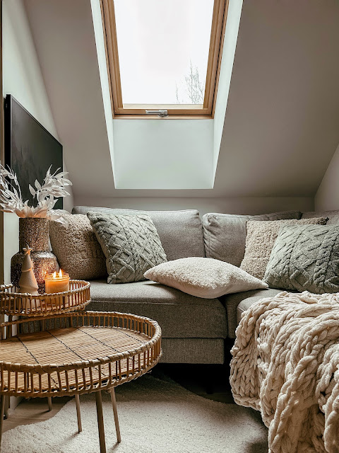 Daleko mi na pewno do minimalizmu, natomiast postanowiłam stworzyć swoją jego definicję. Dla mnie będzie to po prostu spójnie nie tylko urządzone, ale także udekorowane, czyli wykończone wnętrze. Natomiast bez przepychu, przeładowania o zbędne bibeloty. Uwielbiam dekoracje i nie wyobrażam sobie, żeby ich nie było, ale już od pewnego czasu staram się w okresie Świąt te codzienne po prostu zastępować, a nie dokładać nowe. Właśnie po to aby nie czuć się przytłoczonym. Chociaż wiem, że Święta rządzą się swoimi prawami i tutaj nie da się podobno przesadzić, to czasem mam wrażenie, że jednak się da i po jakimś czasie zaczynamy odczuwać nadmiar wszystkiego wokół. Natomiast pamiętajcie, aby wszystko robić w zgodzie ze sobą. Nikogo nie namawiam absolutnie do stawiania 10 choinek, ani do tego, żeby się ich wszystkich pozbyć. Po prostu złapmy balans, jak w codzienności, jak w życiu, poszukajmy złotego środka i tego, co nas cieszy, nasze oko, w jakim wnętrzu, w jakim stylu czujemy się najlepiej.